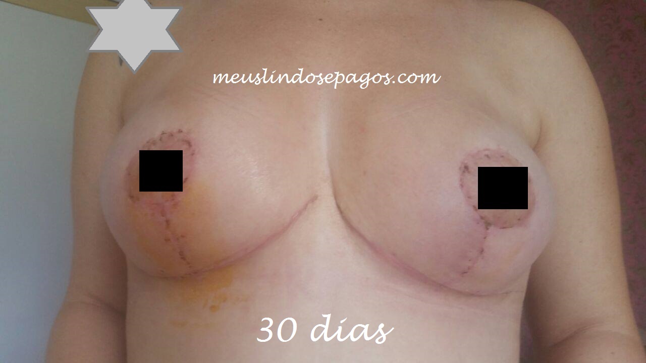 Abdominoplastia total + Lipoaspiração nos flancos + Mastopexia com próteses 350ml com redução da aréola
