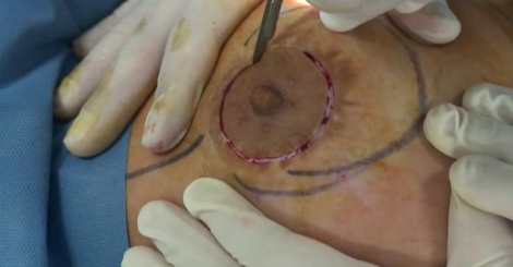 Pela aréola (Periareolar | “Bico da mama”): É necessário ter um tamanho de aréola compatível (algumas tem aréola muito pequena e não comportam essa cirurgia). Nesses casos pode ser programado ajuste do tamanho da aréola, diminuindo-a ou regularizando-a. Esse modo deve ser evitado em pacientes que desejam amamentar no futuro, devido ao risco teórico de prejuízo na lactação. (Na prática, nem sempre ocorre. É a opinião do autor, não havendo um consenso na literatura médica a respeito). É uma técnica segura e promove ótimos resultados.