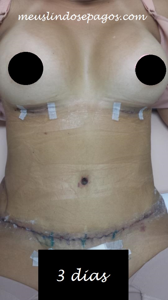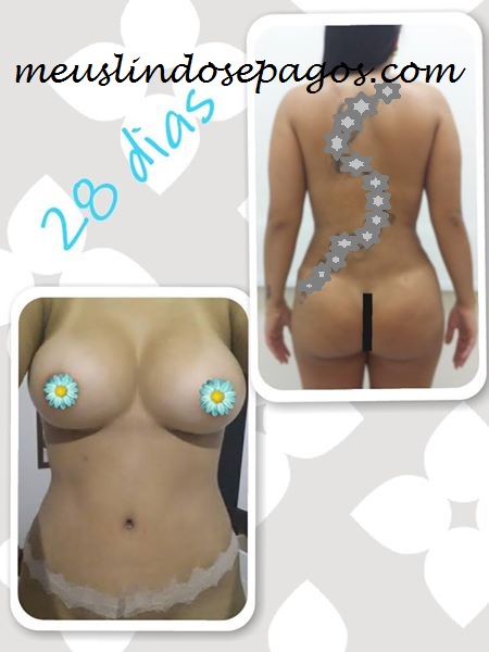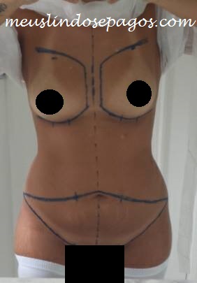 Abdominoplastia/Lipoescultura/Enxerto nos glúteos 250 ml cada lado/ Prótese mamária 280 ml/Eurosilicone/Perfil alto