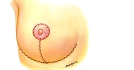 Se a cirurgia realizada for a mastopexia (retirada de pele), na maioria das vezes termina com o T invertido (cicatriz ao redor da aréola, na vertical e na dobra da mama).
