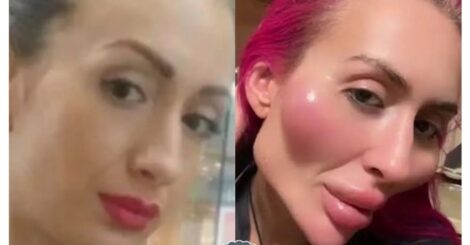 Anastasia Pokreshchuk, modelo ucraniana de 32 anos, conhecida por ter as “maiores maçãs do rosto do mundo”,